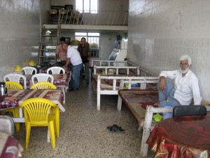 This presented a problem as there was nothing along the way but one truck stop and a market that looked like a throwback from World War I, stocked with faded provisions with a layer of dust that would stir up a dust cloud with one breath. The truck stop afforded our only opportunity for lunch, and we would stop at the market to stock up on provisions for dinner. Upon pulling into the greasy truck stop, everyone piled off the bus, took one look at the place, then immediately made a U-turn and stampeded back onto the bus. Our tour guide came on the bus to try to coerce everyone, explaining that it was either this or cold sandwiches from the mosque down the street. Slowly, one by one, everyone relented and begrudgingly filed back into the truck stop to reluctantly place their lunch orders. It actually turned out to be some pretty good chicken kabab, but it was a near-mutiny getting everyone to order and eat.