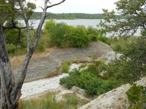 The park is one of the 29 state parks in Texas built by the Civilian Conservation Corps (CCC,) part of the “New Deal” program that created the first state parks in Texas following the Great Depression. It was built between 1935 and 1940 without the aid of much heavy machinery, mostly by hand and pick-axe. Many of the original structures built by the CCC have been preserved, the most impressive being the three-tiered masonry spillway behind the earthen dam.