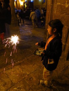 By far, my favorite moment of the celebration was as the countdown began. Suddenly, across the assembly of townspeople, one by one you would see the giant 3 ft long sparklers being ignited, one being lit from the next, until the entire crowd was aglow under a shower of golden “falling stars,” awaiting the fireworks display to mark the stroke of midnight. Afterwards, there was dancing, merriment, street food, accompanied by shouts of “Feliz Ano!” well into the night.
