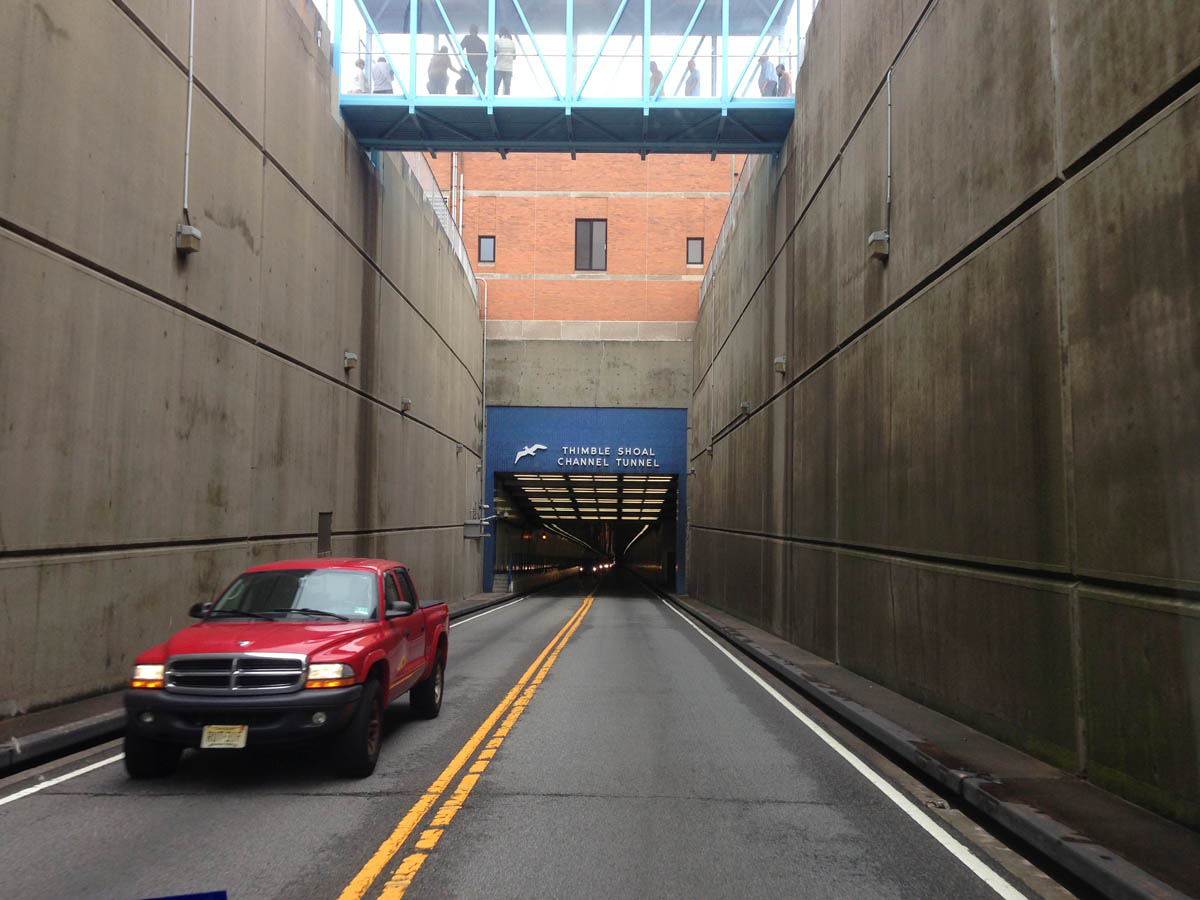 See that right turn lane in the photo above? That was to “One Island,” one of the four manmade islands that buffer the two one-mile sections of tunnel under the shipping lanes. It contains a restaurant, fishing pier, and scenic overlook offering “the perfect vantage point to photograph the bridge-tunnel.” It is billed as “The one stop you don’t want to miss!” Yep. You guessed it. I missed it. All while trying to grab a photo of the tunnel entrance.