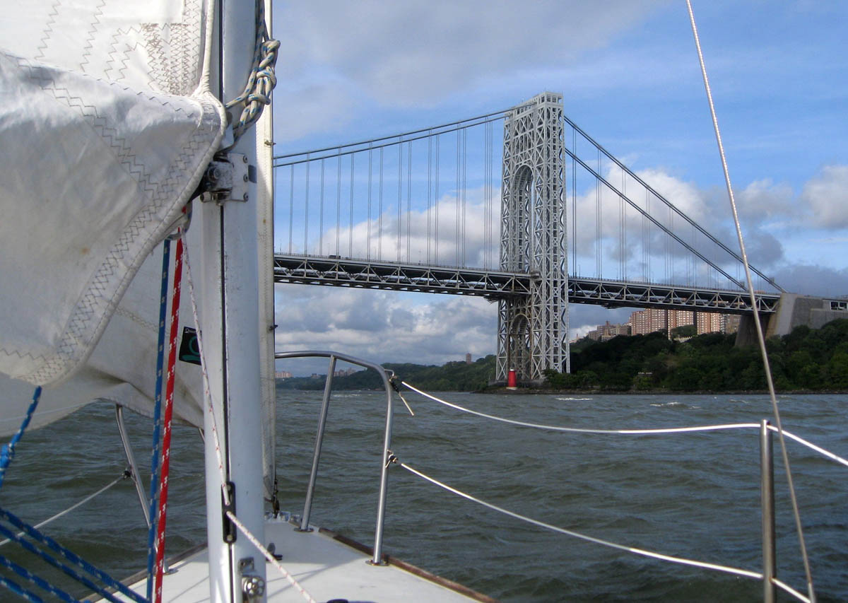 One might also think it’s about getting out and soaking up the summertime sunshine.  But in fact during summer months, the wind can be non-existent, and with the wicked ebb and flood of the Hudson River on a light wind day, one can actually find themselves sailing backwards!   Without a strong wind, chop from the NY Waterway, Staten Island Ferry, cruise ship traffic, etc. can be brutal as the boat bobs to and fro, the halyards clanging against the mast, and sails flapping about in utter confusion.
