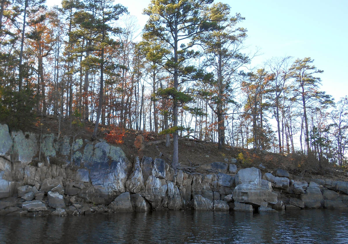 Lake Ouachita , over 25 miles in length, is completely surrounded by the Ouachita National Forest, which means no shoreline development…nothing but miles and miles of beautiful pine trees lining the shore.  The lake is known for its clear water, even offering scuba diving and snorkeling tours in the summer.