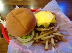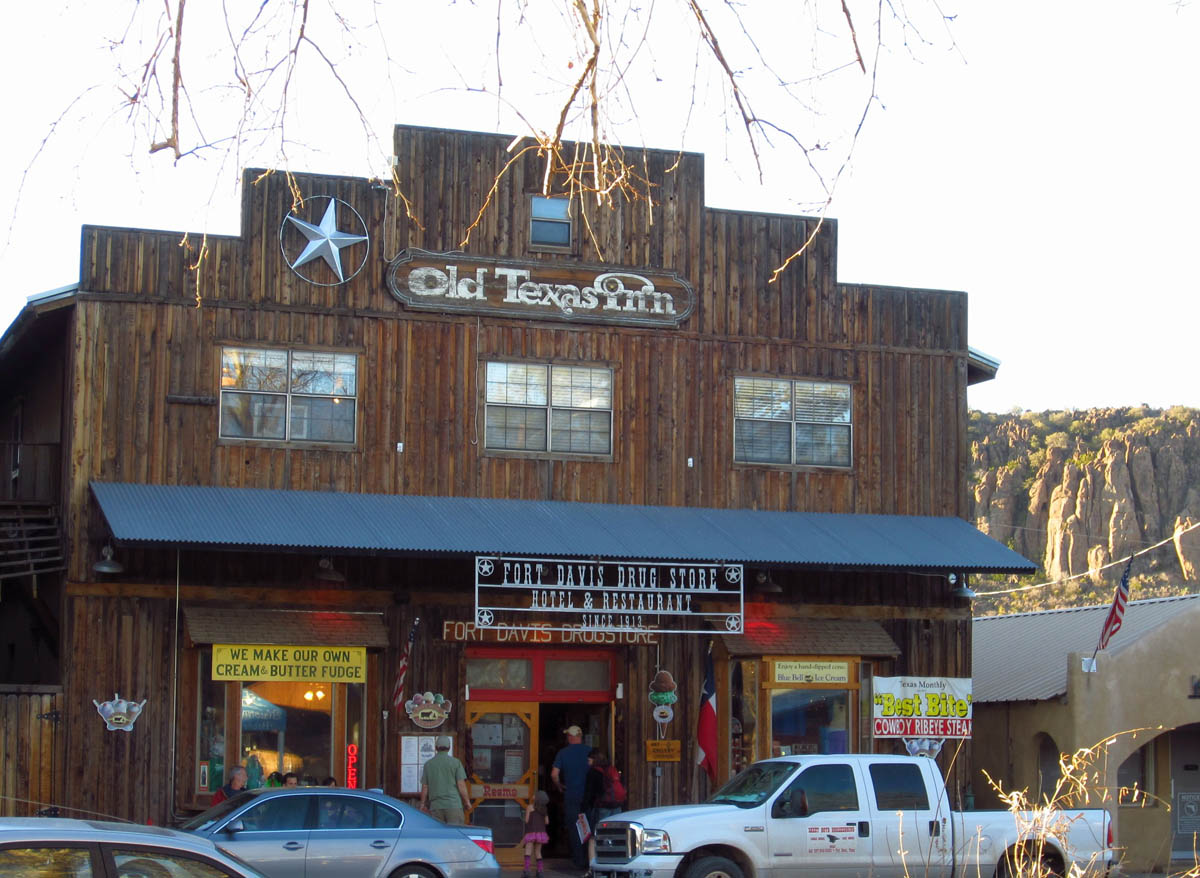The original plan was to spend a good bit of the afternoon exploring Ft. Davis. Having been there earlier in the week just long enough for dinner, there appeared to be a lot of interesting sites, including the Fort Davis National Historic Site, billed as “the best preserved fort in the West.” The main street alone was indicative of an interesting little cowboy town. But with the wind picking up speed, we agree to stop only long enough for lunch at the Fort Davis Drugstore and General Store. After eating my own cooking for a week at Balmorhea, all I could think about was the big fat juicy cheeseburger I had seen on Kimbopolo’s blog, and I remark to my vegan friend, it is worth the stop, wind or no wind!