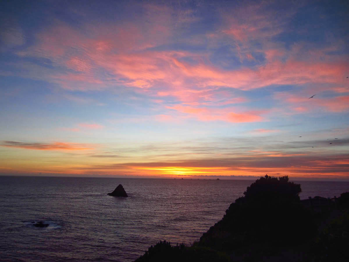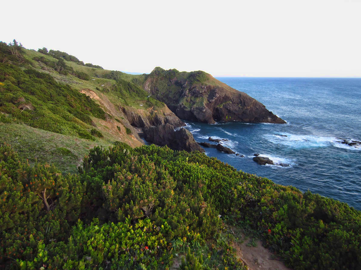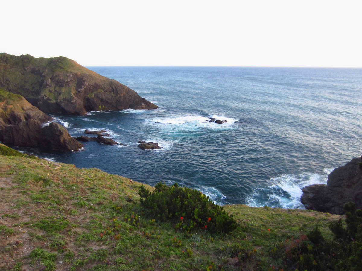 I do my best to memorize landmarks and count switchbacks along the trail so I can find my way back after the sun has set.  It feels good to walk off my dinner.  It is turning out to be glorious clear night, which I am finding to be a rarity along the foggy coast.  This may be my only chance for an Oregon sunset, so I am not going to miss it.IMG_0508 IMG_0516