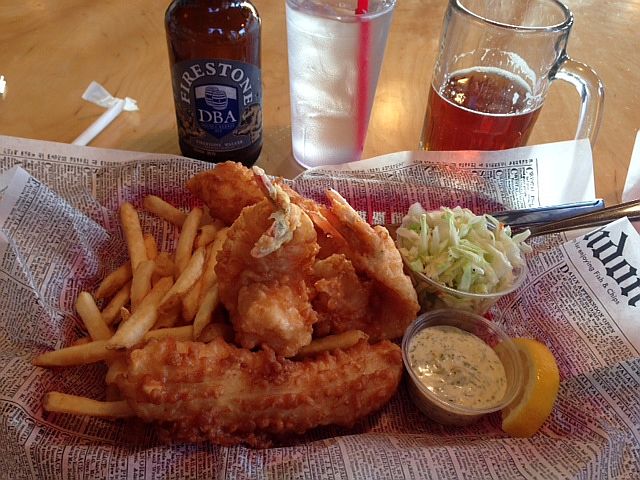 The Fish & Chips and Prawns Platter is fresh, with sweet succulent cod and giant prawns deep fried to a crispy golden brown, perfectly accompanied by a cold double barrel ale.  One guilty pleasure chased by another.photo-2