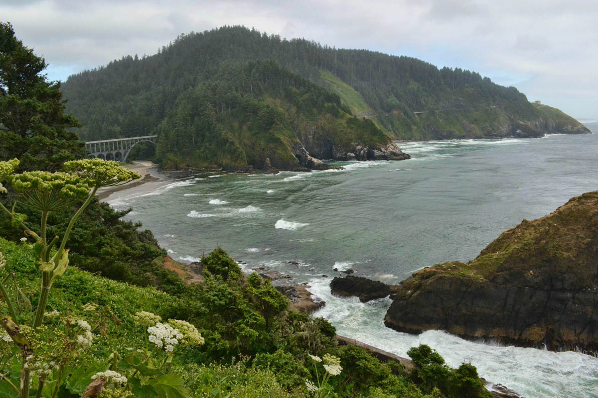 There is a three mile hike from the campground to Heceta Head Light, which is accessible only by footpath, either from the trail or from the beachside parking lot. RV parking is on the other side of beautiful Cape Creek Bridge, built in 1932 by Conde McCullough, the bridge engineer who designed most of Oregon’s coastal bridges along Highway 101.