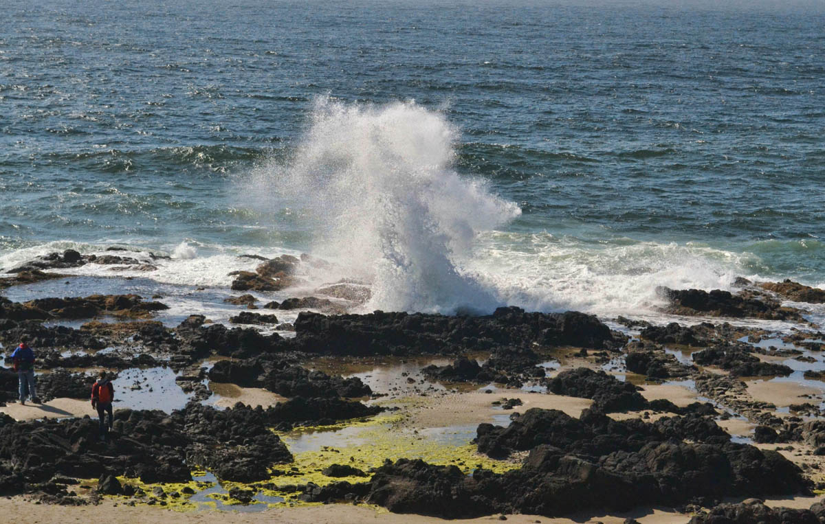 The nice, enthusiastic volunteer tells me it is high tide, and I should head along the tidal path to see Thor’s Well and the Spout Hole, two attractions with lots of “geyser-like” activity at high tide.