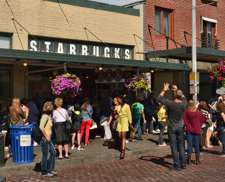 There was no free parking anywhere that I could find. Sidewalks were overrun with the ugliest of tourists. Not just the typical stereotypes, but crowds just seem to bring out the worst in all of us. Overheard at the artisan market, “Can we bargain down the prices here?” For Chrisakes woman, these are “starving artists” who put their heart and soul out there for you to fondle, hoping to be able to pay the rent, and you want to knock a few cents off for the thrill of it? People stand in line to buy a Latte from the “Original” Starbucks, as if it were somehow different from the other 21,000 Starbucks stores. The entire waterfront feels like a carnival sideshow.