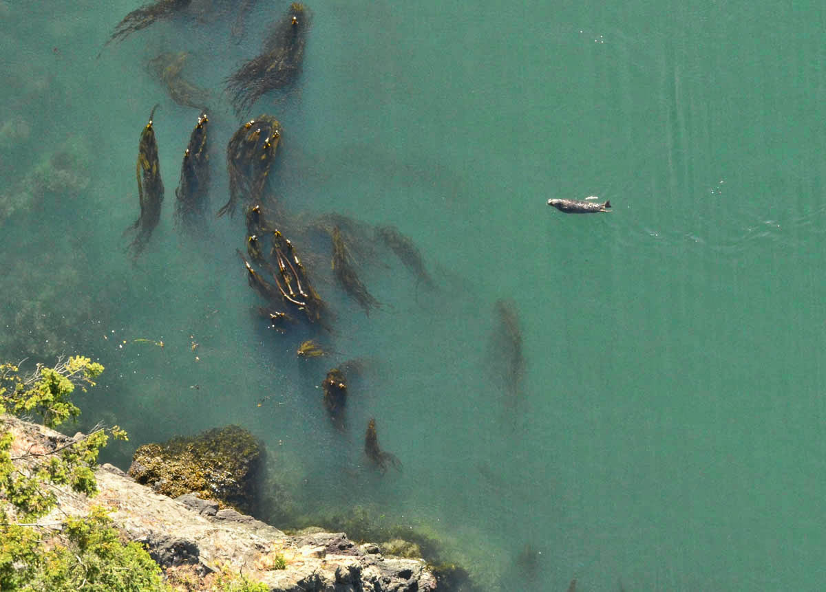 Seal moves toward kelp bed to feed...