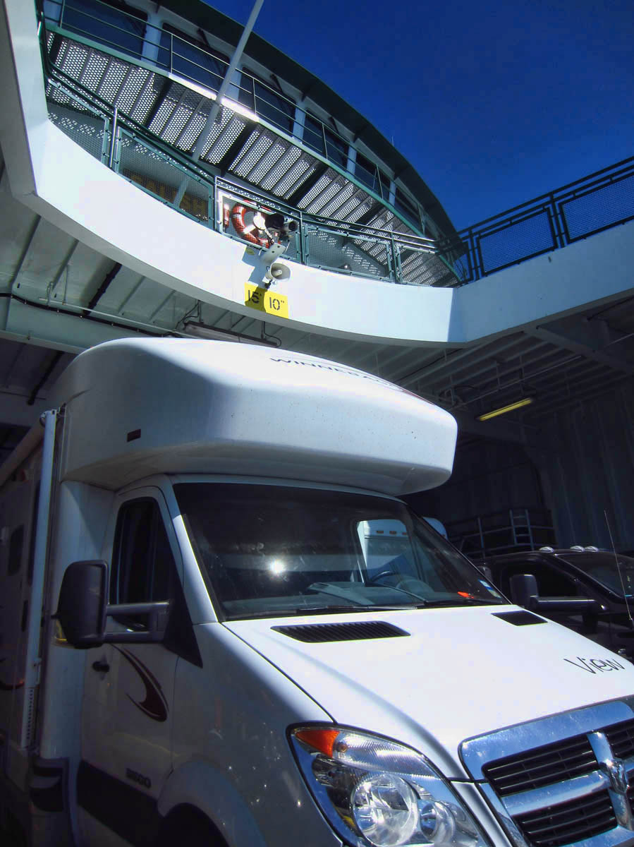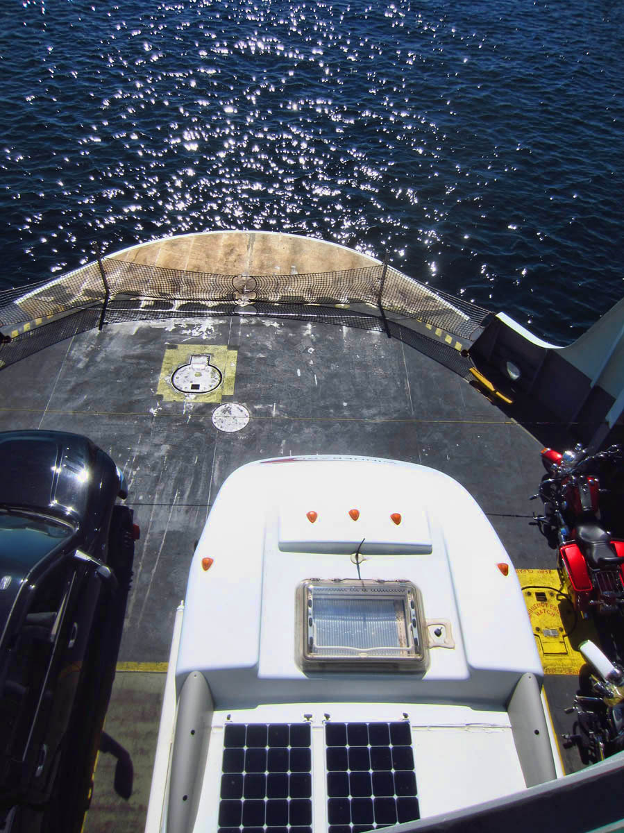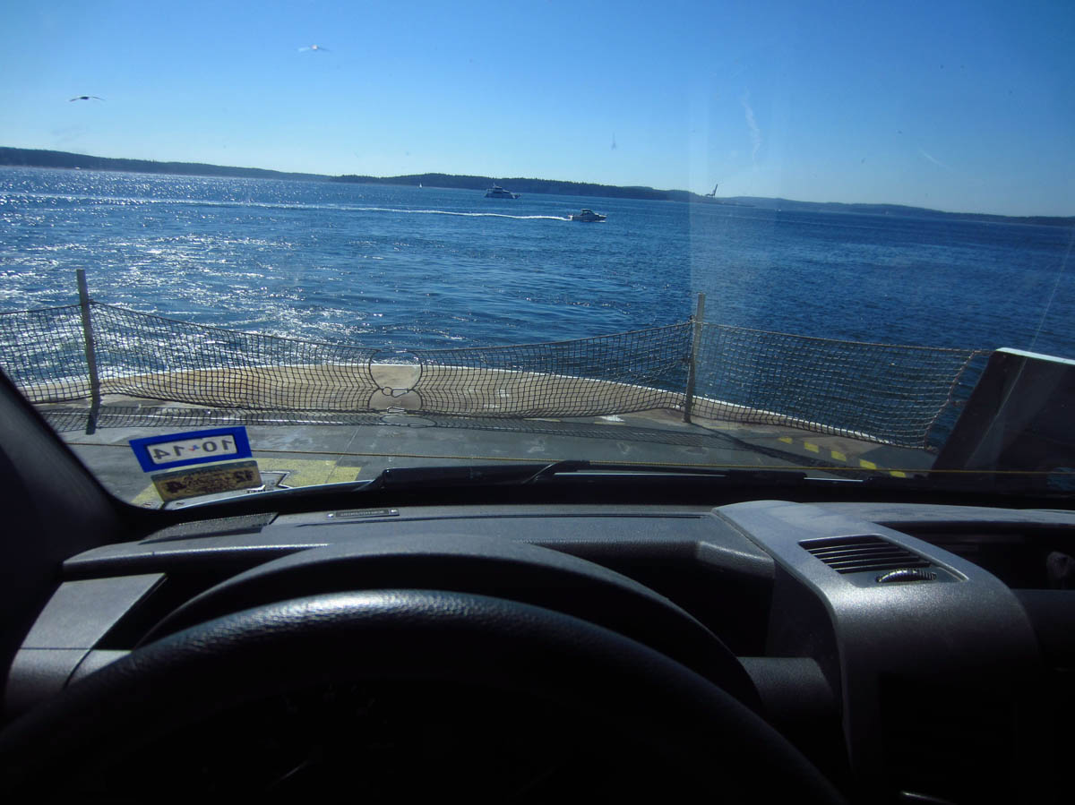 I have a bit of emotional baggage about ferry rides.  The Outer Banks Ferry to Ocracoke will forever remain in my memory, where the ferry turned around to travel backwards, and 45 mph winds yanked open my skylight causing me to fly down the deck stairs, fling open the driver’s side door, only to have it ripped from my hands by the wind, thus slamming into the guardrail.  It put a huge dent in my driver’s side door that I must see every time I open the door.   It was my first dent, and by far the most painful.   But at the end of the ride was the lovely little island of Ocracoke, one of my favorite destinations thus far.   So I trust this ferry ride will bring more of the same.