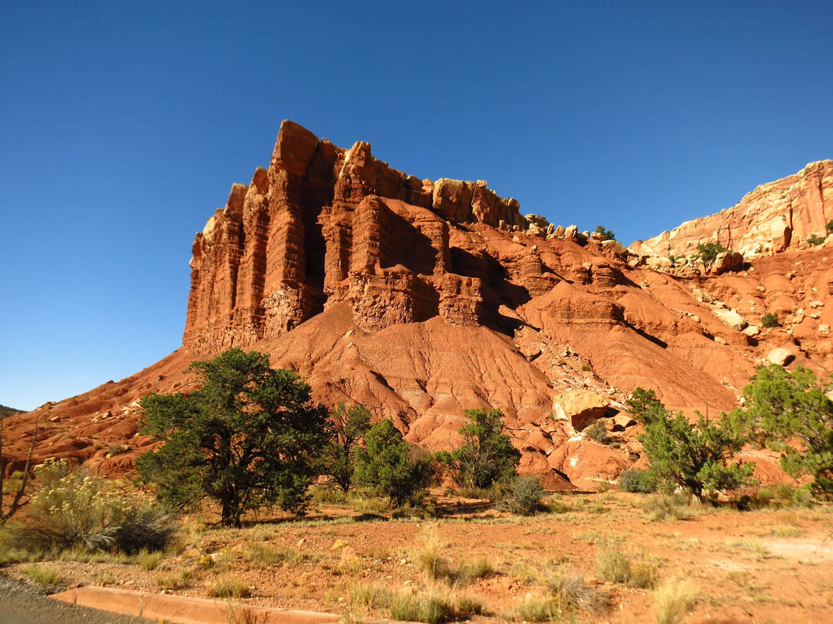 The trail head is located at the end of the parks Scenic Drive, which meanders 16 miles RT along the edge of the Waterpocket Fold, the buckle in the earth’s surface for which the park is known. A group of Navajo sandstone domes resembling the D.C. Capitol Building, and towering rock ridges known as “reefs” give the park its name. The Scenic drive ends at Capitol Gorge trail head.