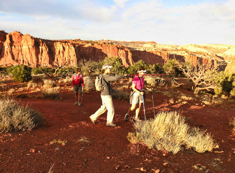 We did three “Ladies Only” hikes in Capitol Reef;  Sunset at Chimney Rock (my favorite,) Cohab Canyon, and the most challenging “easy” trail I have ever hiked, the Fremont River Trail.