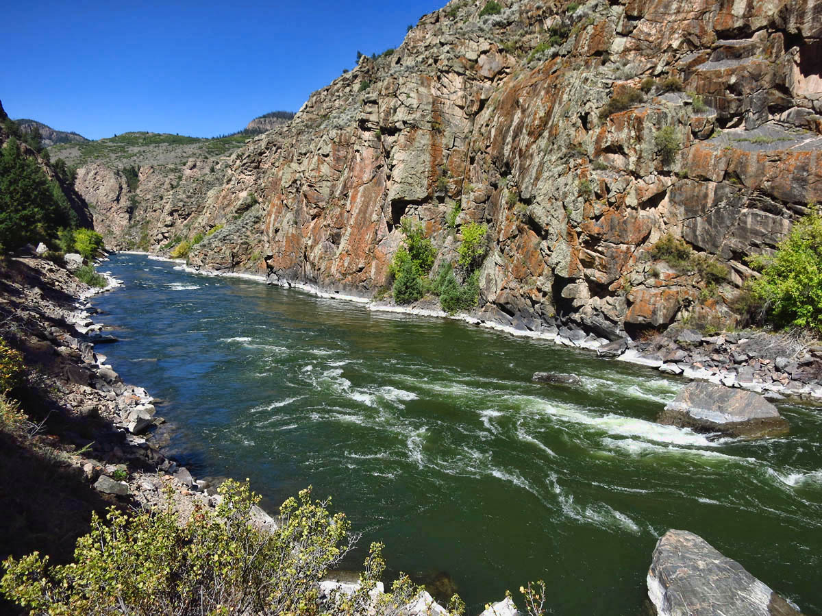 Prior to construction of the three dams, the Gunnison River was five times more powerful than today. Still, the Gunnison River drops at an average decent of 43 ft per mile, compared to that of the Colorado River in the Grand Canyon at 7.5 ft per mile.