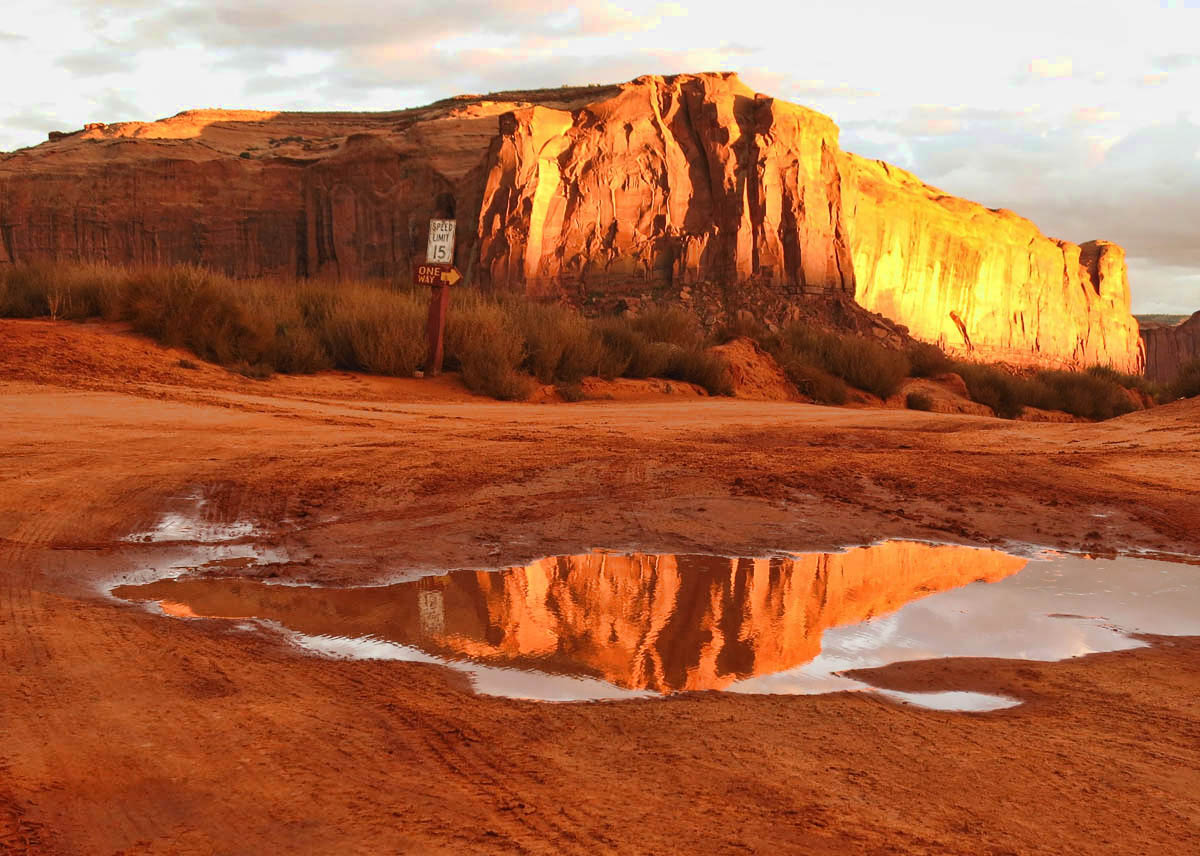 Iconic shot along Hwy 163 at mile marker 13, leading into Monument Valley, made famous in the movies “Thelma and Louise” and “Forest Gump.”
