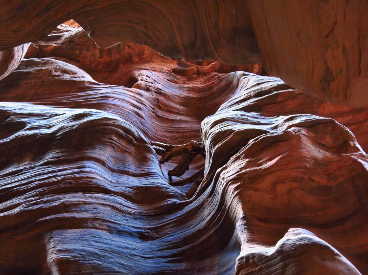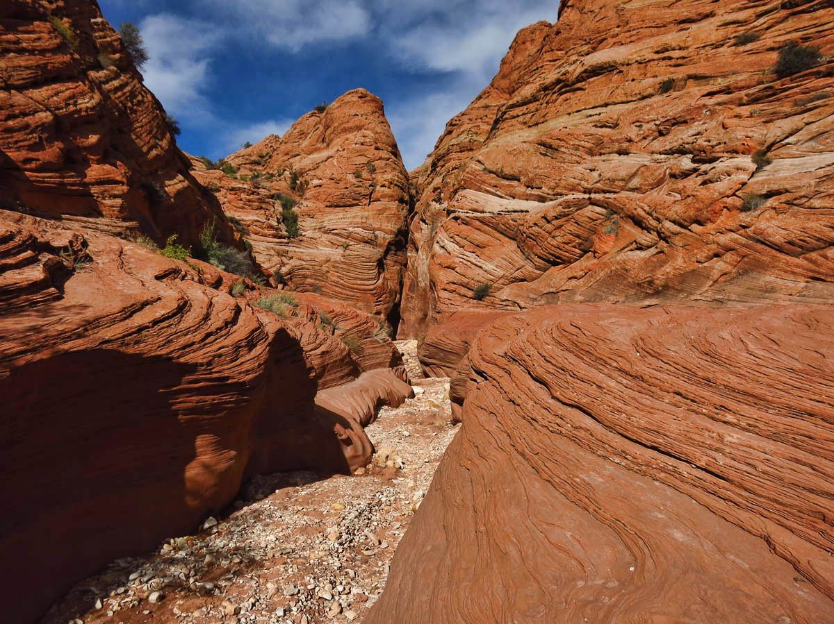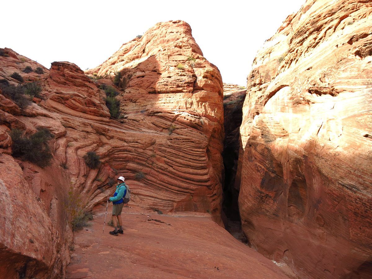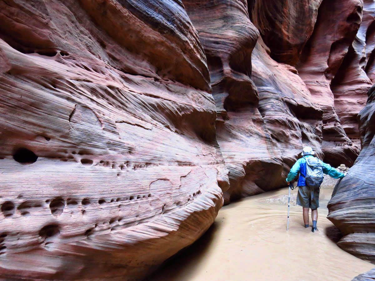 7. What a beautiful slot canyon and very challenging !!!! So glad Chris showed up just at the right time, nothing happens by coincidence!! When I went on my 5 day trip in early sept with national park tourz, we went to Peek a Boo slot canyon, outside Kanab, completely new experience and amazing!!! I laughed when you said you planned on getting your feet wet. When we went to the narrows at Zion, several people in our group of 7 had water appropriate shoes. I had on a new pair of Ecco “dress” sandles that I thought were a little too nice to submerge, but they were no worse for the wear. My friend had a nice new pair of Merrell hiking shoes. She said she could wear them because they were “waterproof”. Someone said lets see how dry they are after you go through this river!!!! It’s one of those things you have to he there, but was so funny. Fortunately, she left them outside the next day and they were dry for the following days hike. Would have taken a week to dry here in Florida. I want to do the wave on my next “destination trip”. Didn’t realize the experienced folks kind mock such travelers. Guess every hike is really a destination hike until one repeats the hike. Thanks.