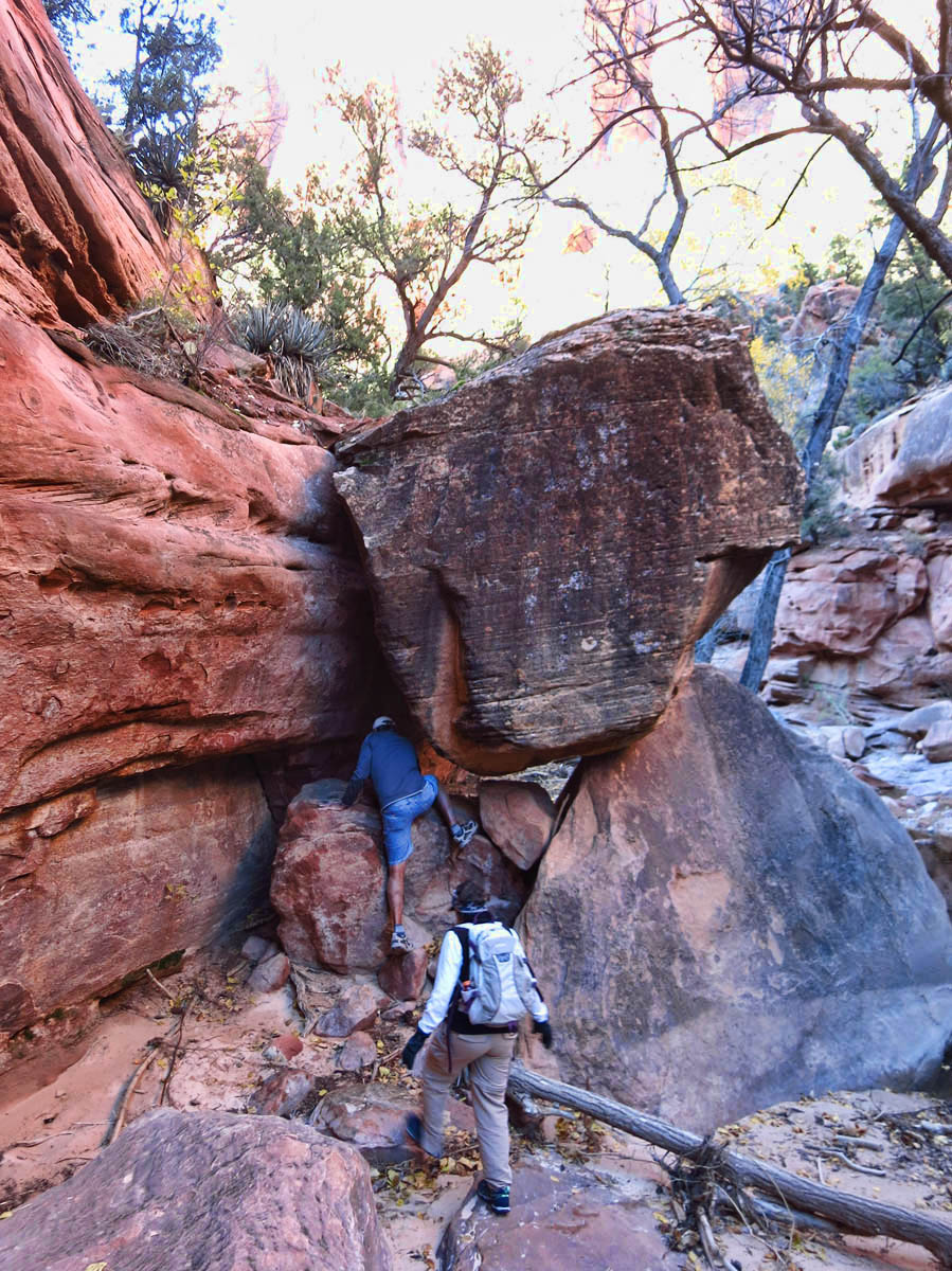 And as for precious time spent with friends, here is a “triple play on Thanksgiving Day.” In my last post, I complained about the crowds in Zion. But for every one crowded trail, there are a dozen lesser known trails within or just beyond the boundaries of the National Park, just waiting their turn to be explored. Here are three such glorious examples of hikes where we didn’t encounter a single solitary soul…