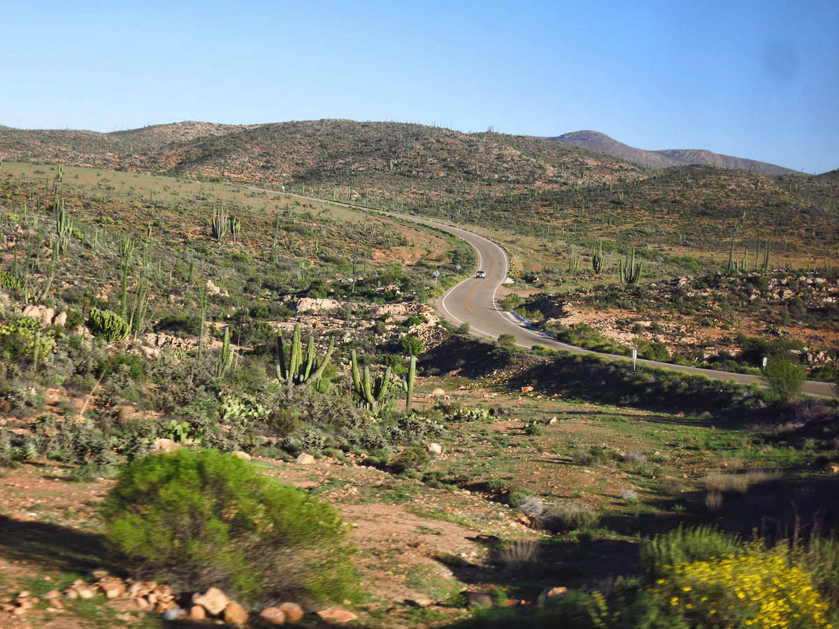 The stretch down Highway 1 to my next destination is a long one, requiring eight hours of travel. Bus schedules are not as frequent in the northern state of Baja de Norte as they are further south, so I have the option of leaving at 10:00am and spending all day on the bus, or leaving after dark and sleeping on the bus. No question, I want to see as much of the countryside as possible.