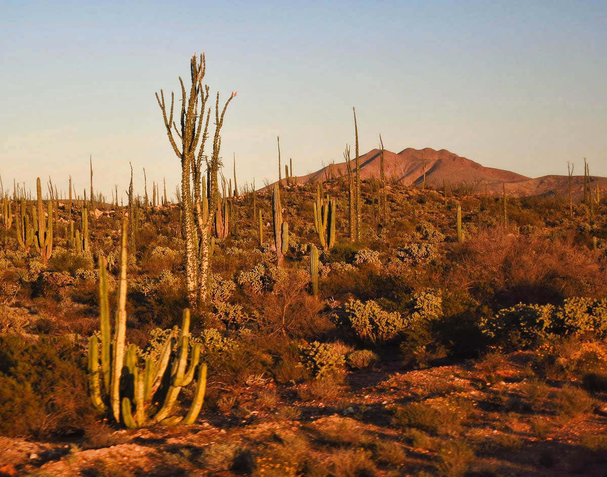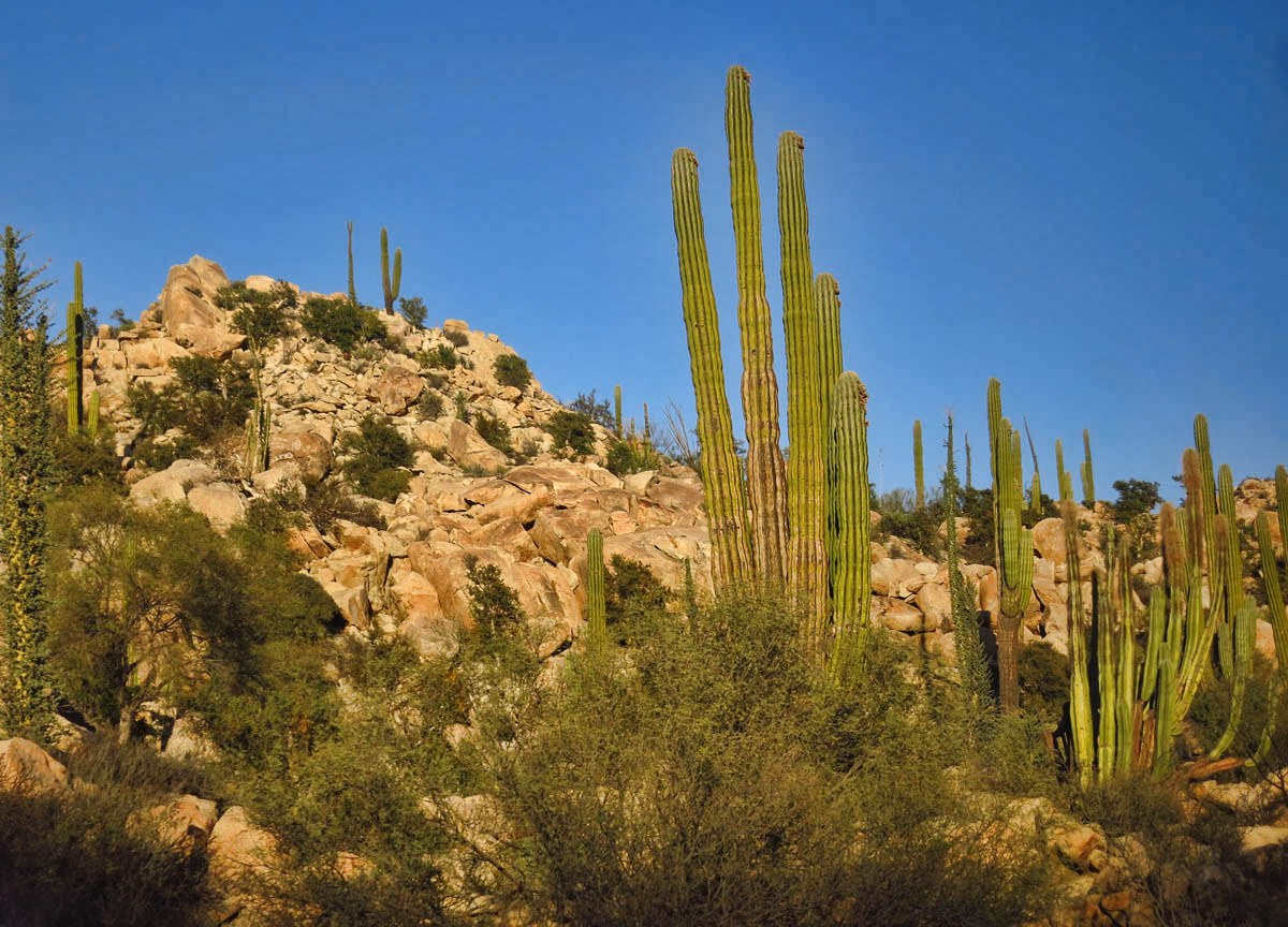 In checking the map in my trusty Moon Guide, I see the bus will be passing through Valle de los Cirios, which translates to “Valley of the Candles.” It’s a long way down to this natural preserve, so my hope is that I will get to see at least a portion of it before sundown, so I watch the landmarks on the map while keeping an eye on the setting sun in eager anticipation.