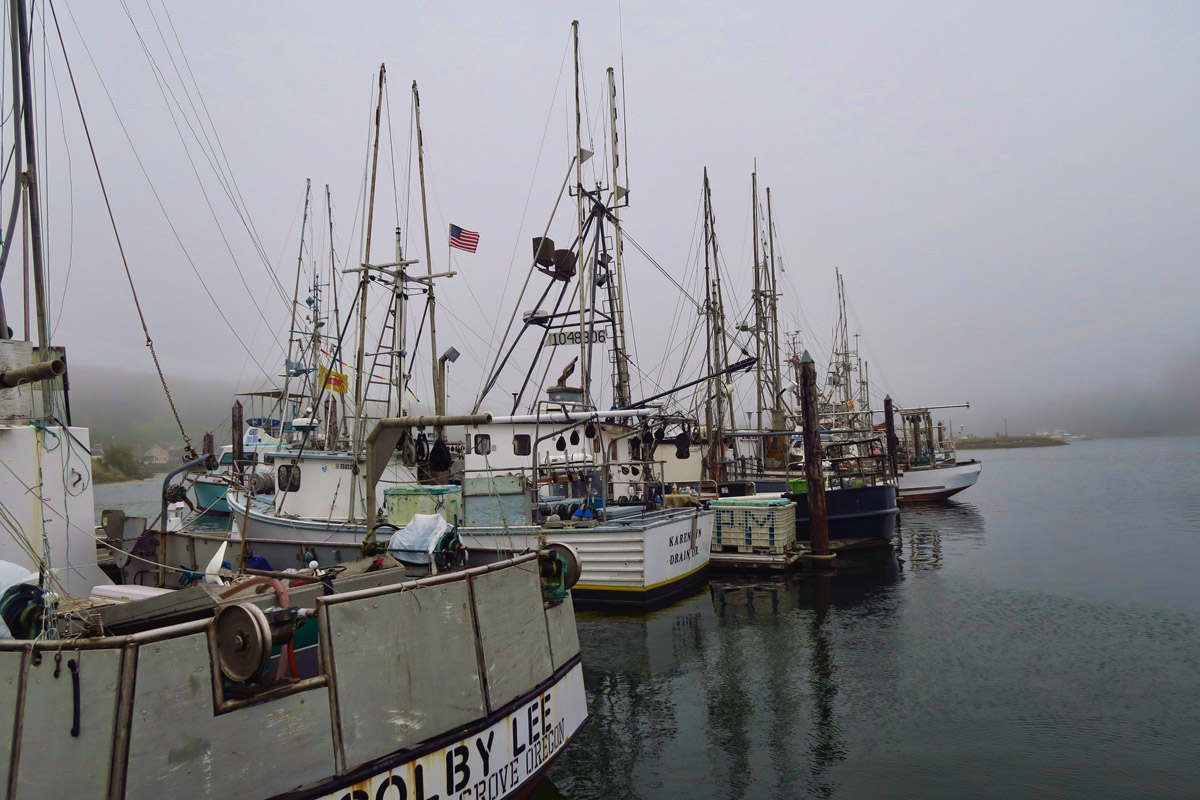 For what would turn out to be the best deal on Dungeness along the entire Oregon Coast, we walk across the marina to the “Sleep Robber” and buy four huge crabs for $8 apiece, not even sure we have the pots big enough to cook them.  Between the three of us, surely we have it covered.  The fishmonger on the Sleep Robber cleans them for us and splits them in half, making it easier to fit them in a pot.  He also gives us a bucket of fresh seawater from his pump beneath the surface as his recommended seasoning method.  “The sea water adds just the right amount of saltiness.  Don’t put anything else in there.  It’s perfect!”   “What about serving it?  Lemon?  Butter?”  “The only crab that needs lemon or butter is crab that’s not fresh. You won’t need it.”IMG_5772