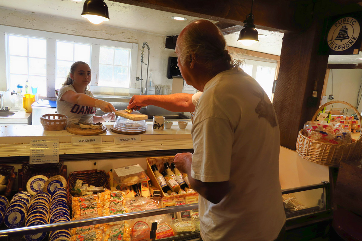 Sampling the cheeses at Blue Heron Cheese Factory.