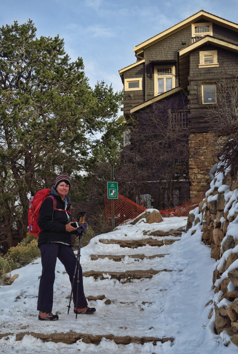 Char in front of Kolb Studio, which marks the end of the Bright Angel Trail.