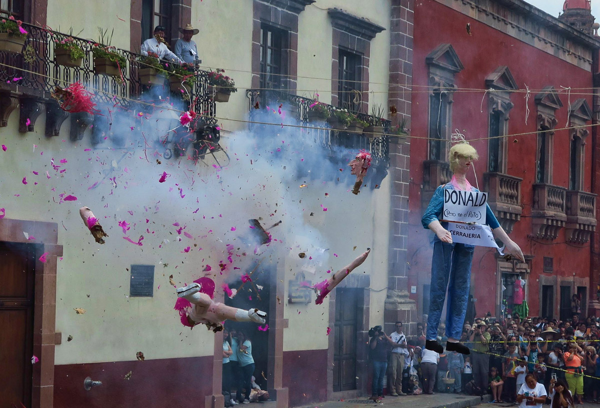 But they will save the best for last….a pouty-lipped, pale effigy wearing a suit with a straw thatch on his head, wearing a sign that says “Donald….pero no el pato.” Donald, but not the duck. As each of the effigies are lowered for their fuses to be ignited, the crowd chants, “Doh-nold! Doh-nold! Doh-nold!” There are just as many gringos chanting in the crowd, and the Mexicans seem to get a kick out of their enthusiasm.