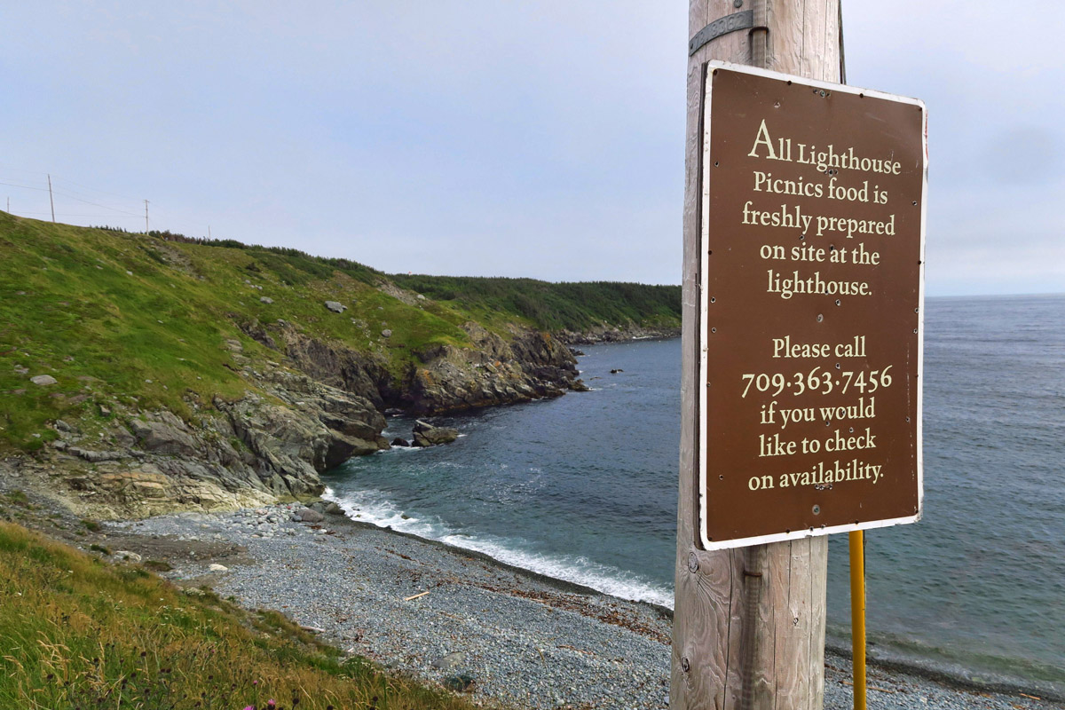 I drive south along the coastal road toward Ferryland.  I’ve read several articles recommending “Lighthouse Picnics,” a company run by a couple of female entrepreneurs, one whose great grandfather was once the lighthouse keeper, while her grandmother was born in the Ferryland Lighthouse residence.  Once the light was automated in the 70’s, the light keeper’s residence was vacated, and began falling into disrepair.  So they leased the abandoned building from the community of Ferryland, built a kitchen inside, and began offering picnics, complete with basket and blanket.