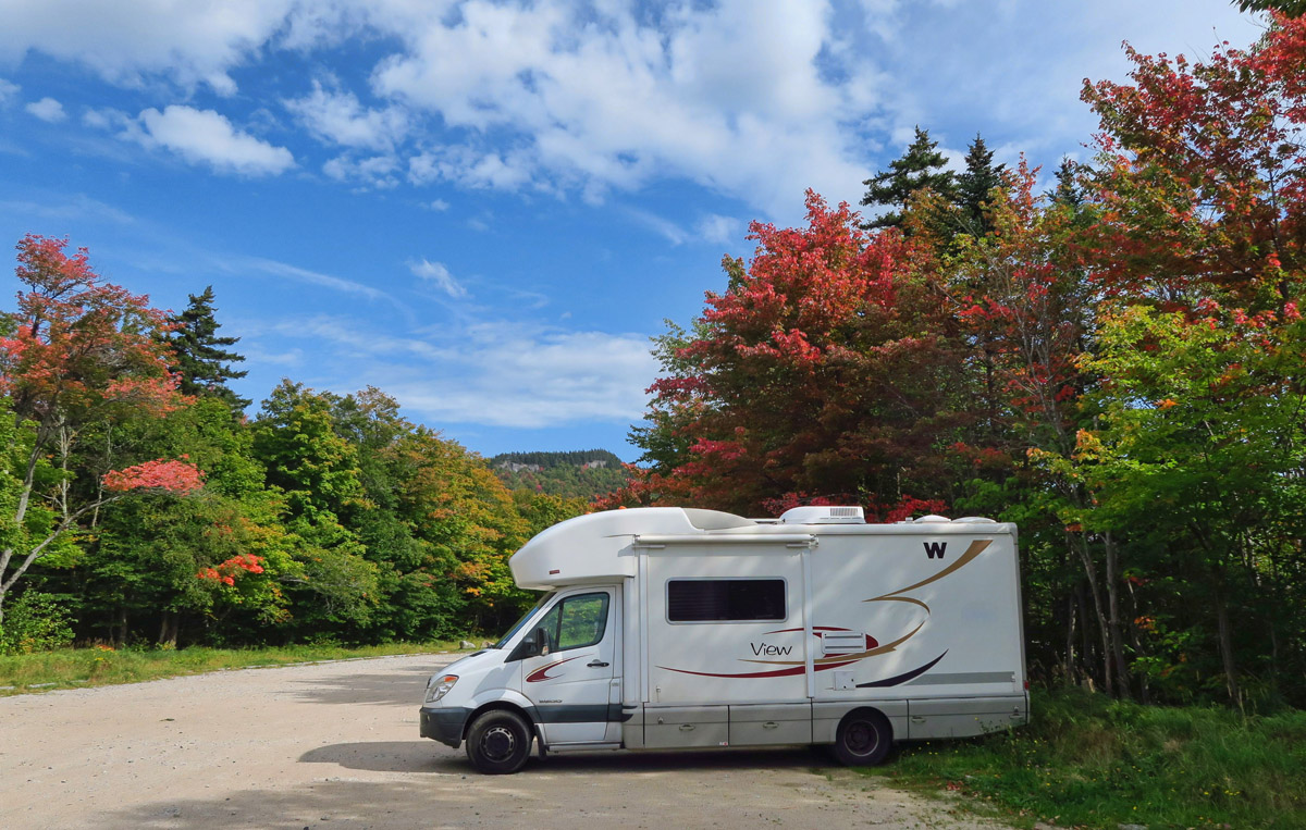 The staff of the AMC Hut reservation line is extremely helpful.  Since I am not familiar with the area, I need advice so I don’t book huts that are too far apart, or in the wrong sequence, particularly since they are not cheap, and I’m now within the “no refund” cancellation period.   I explain my hiking abilities, as well as my desire to do a “hut to hut,” as opposed to a “lodge to hut” (which would mean departing and arriving from a parking lot.)  I want to hike to different huts.  Not only does the reservationist help me with trail advice, but she tells me I can leave the Winnie parked at Pinkham Notch Visitor Center.   Overnight accommodations not just for me, but for the Winnie too!