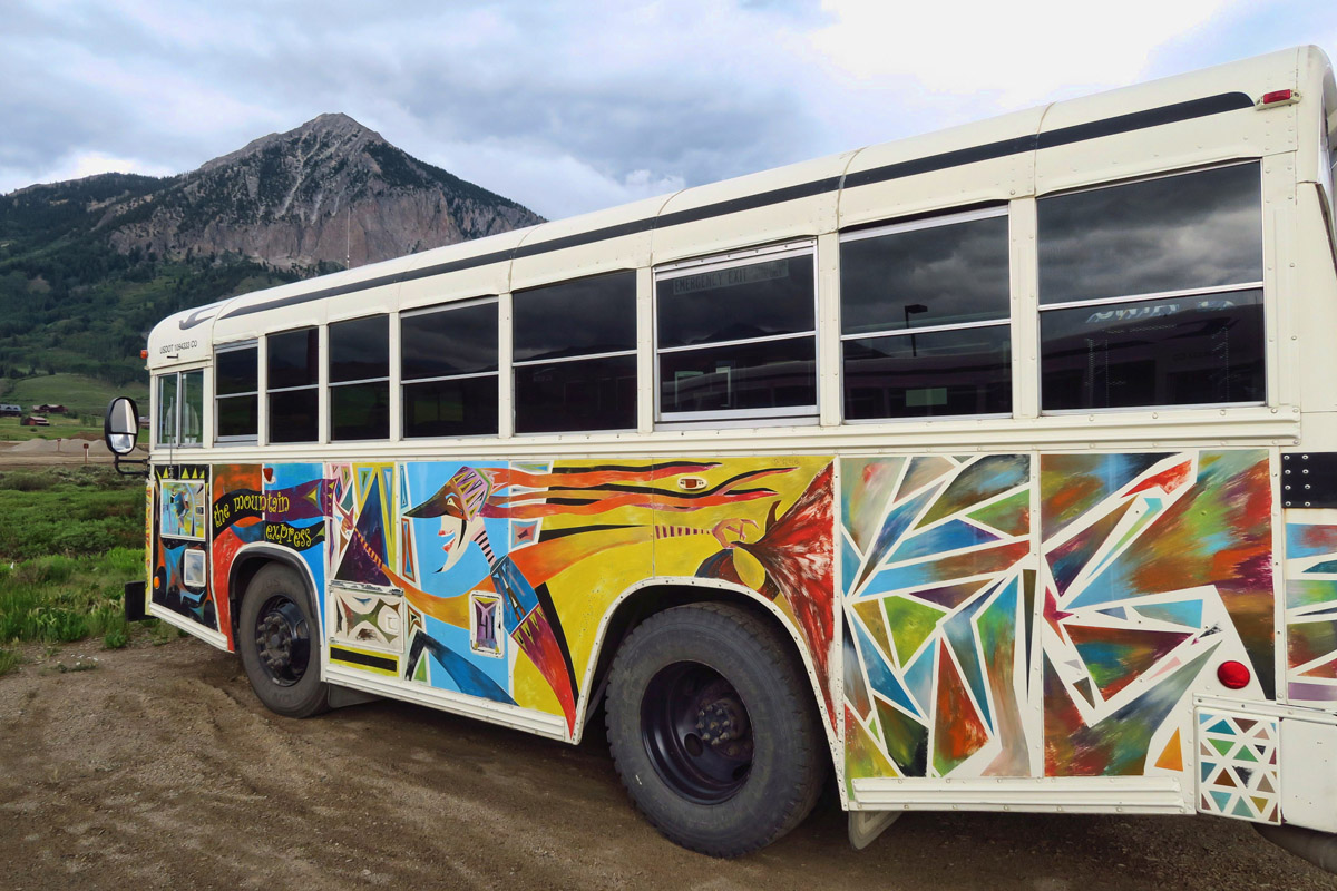 The bus up to Gothic and Judd Falls Trail Head is known as the “Aspen Rhythm Bus,” painted by a local artist in 2010.