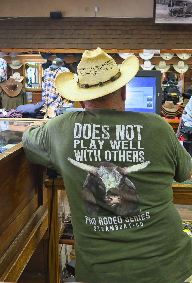 Some mountain towns sell quilts. Some sell fleece. Steamboat sells animal hides.