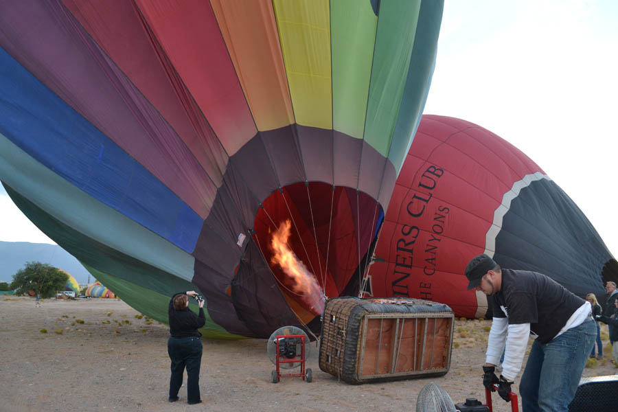 The heat causes the "envelope" to rise. A typical balloon holds about 90,000 cu feet of air.