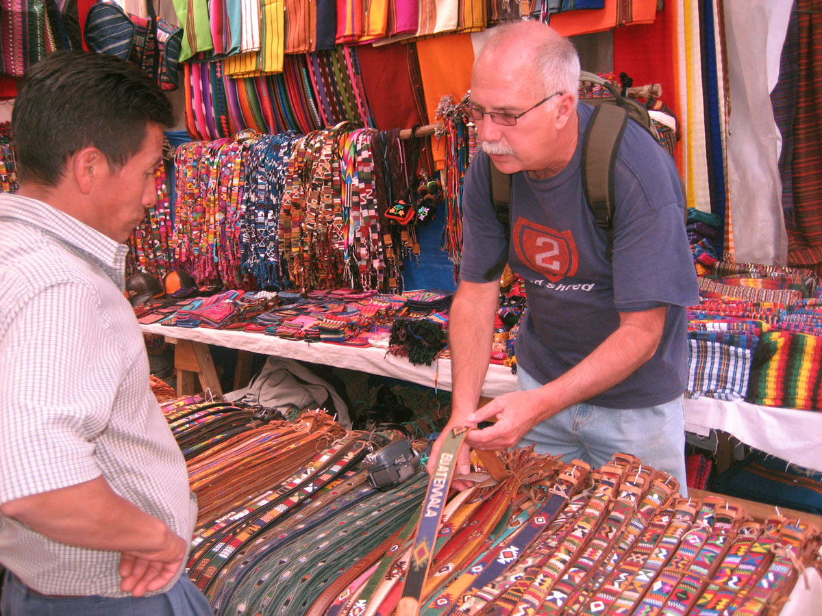 Don shops for Guatemalan belt and debates his waist size after dropping a few pounds along his 3 month trip.