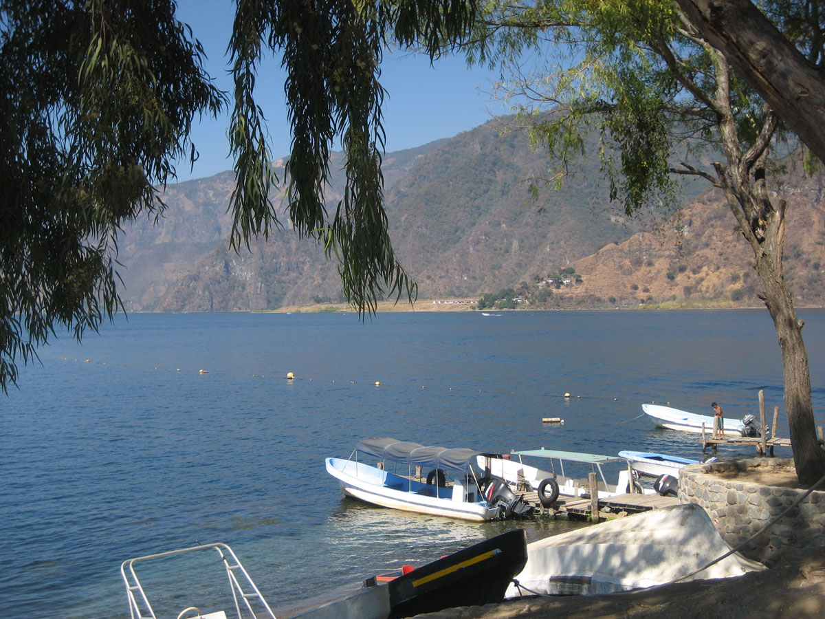 The many boats for hire for tours around the lake, many offering trips to "Agua Termales" where warm thermal waters meet the cool lake.