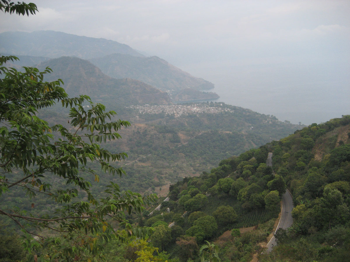 View of the road below and the lake behind us as we climbed over the mountain ridge surrounding the lake.