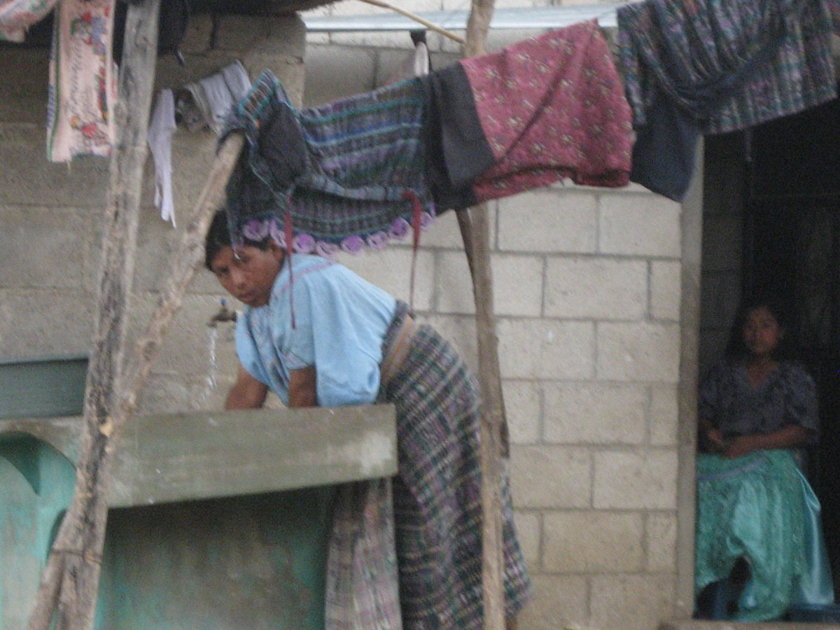 Snapped this photo from the car window of a woman doing her laundry in front of her concrete home.