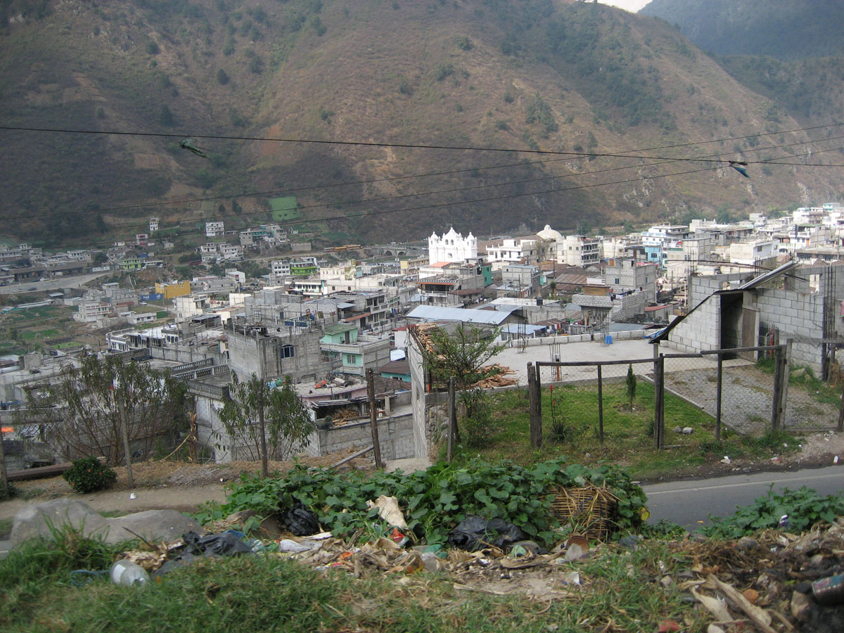 The sun lights up the main church in the little mountainside town of Zunil, on our way to the hot springs.
