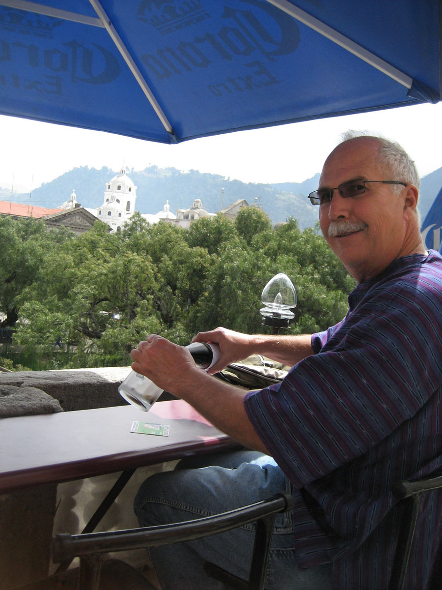 Don enjoys a Moza from Enrique's Balcony overlooking the Parque Central