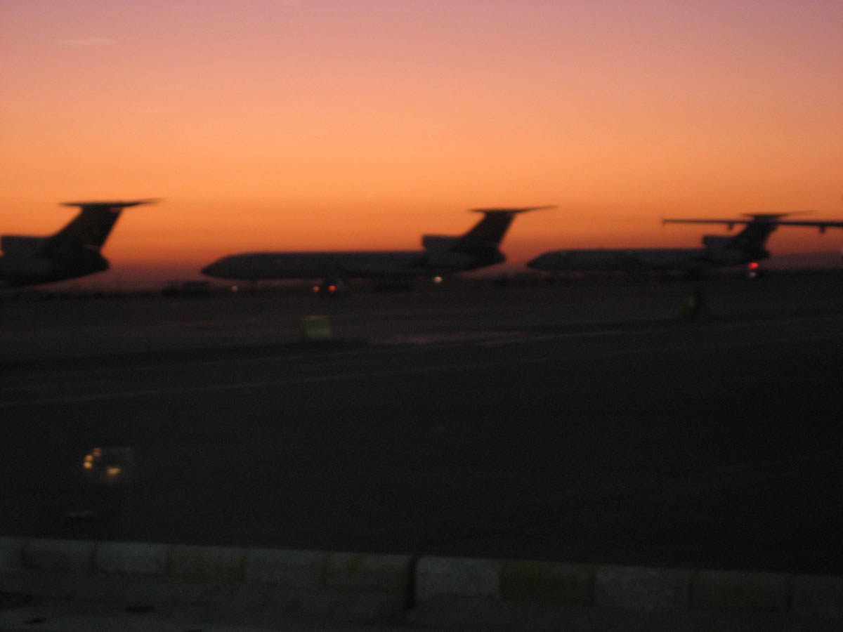 Sunrise over IranAir planes in Mashhad, Iran