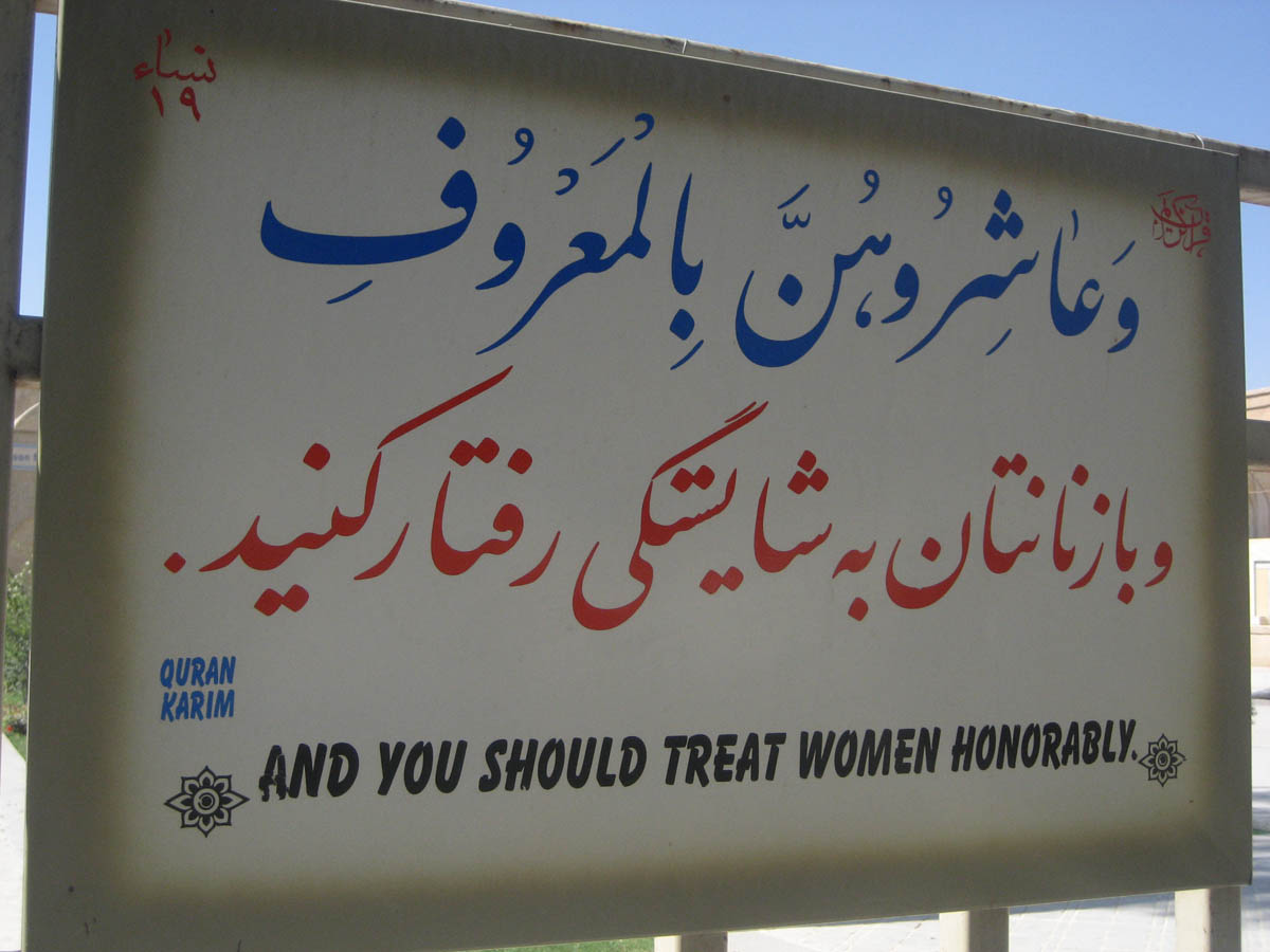 The gate surrounding the Chehel Sotun Palace was lined with billboards, each with a verse from the Holy Qu'ran. This one was my favorite. ;-)