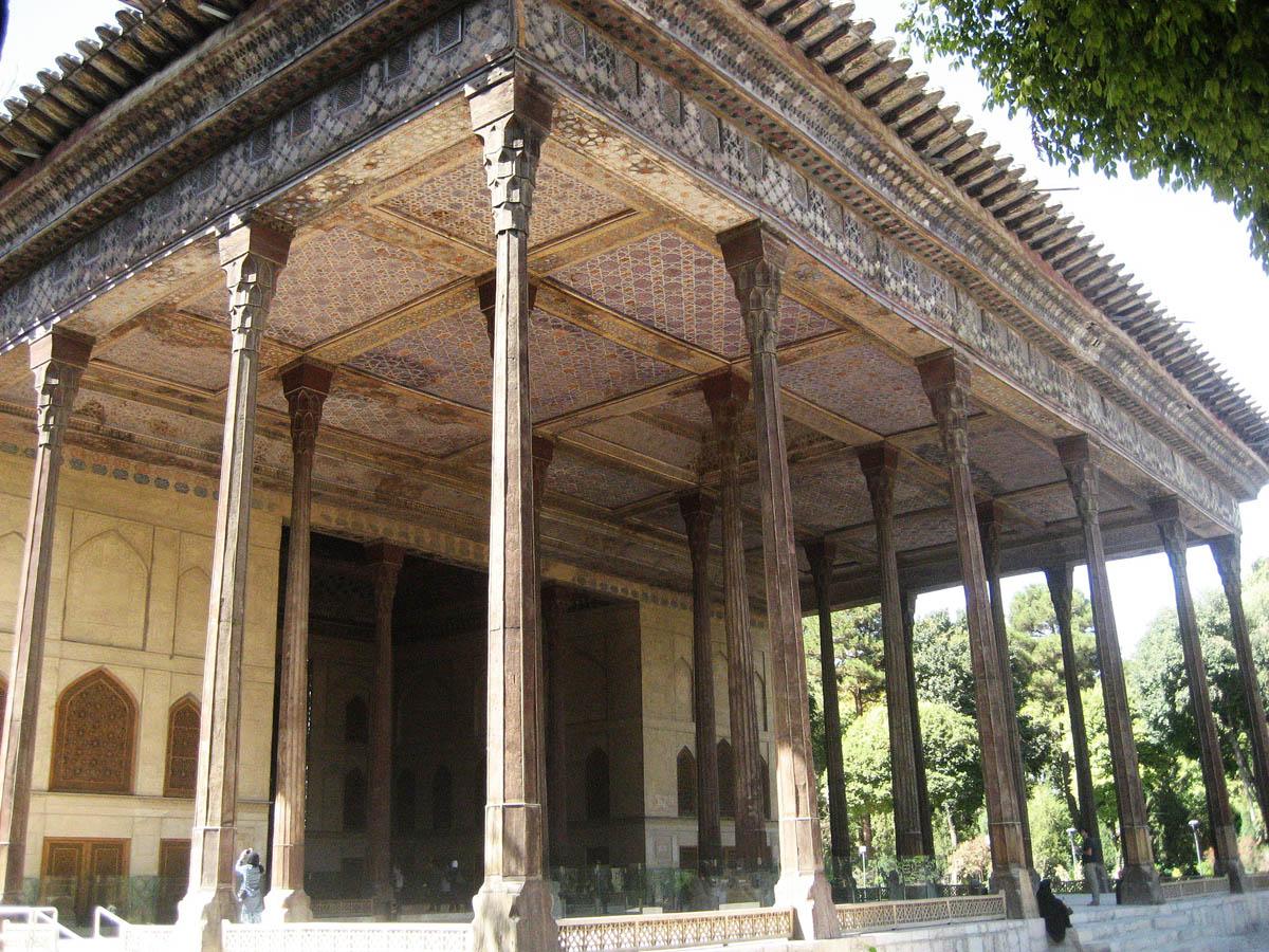 The Chehel Sotun Palace is also referred to as the "Palace of 40 pillars," believed to be called this because it's 20 slender, ribbed wooden columns reflect in the pool in front of the palace.