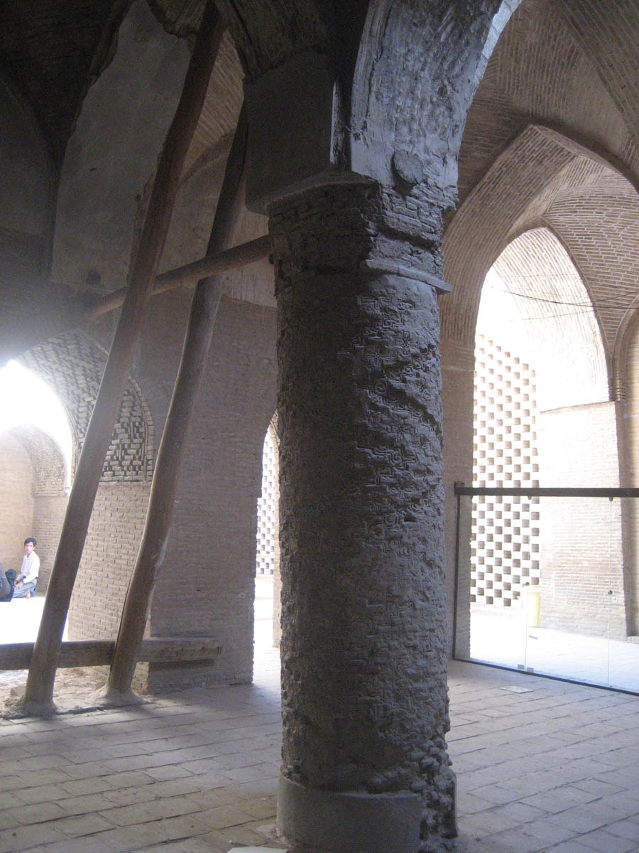 Leaning column inside the Jameh Mosque, the largest mosque in Iran.