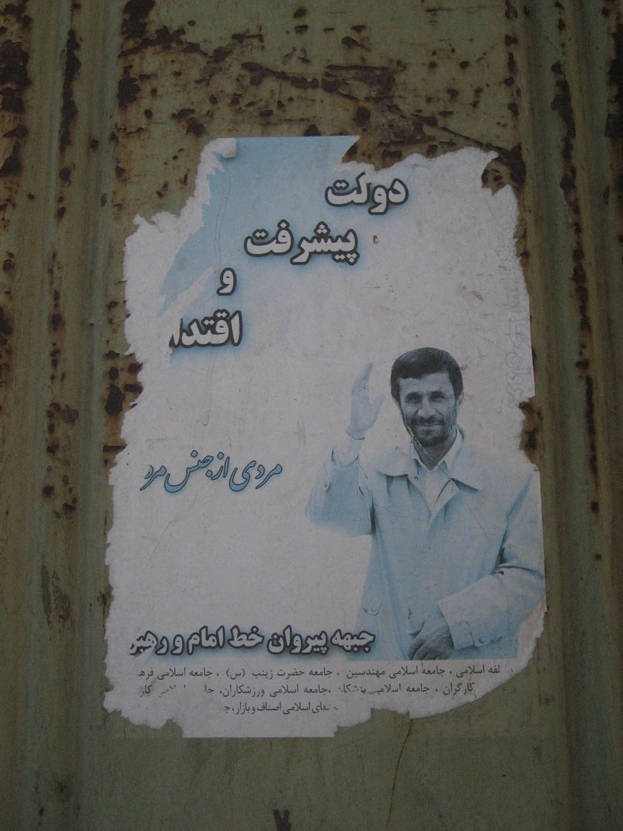 It was interesting to see how few Ahmadinejad posters there were in comparison to the opposition, Mousavi. I know others on the tour photographed more, but this was the only one I saw...