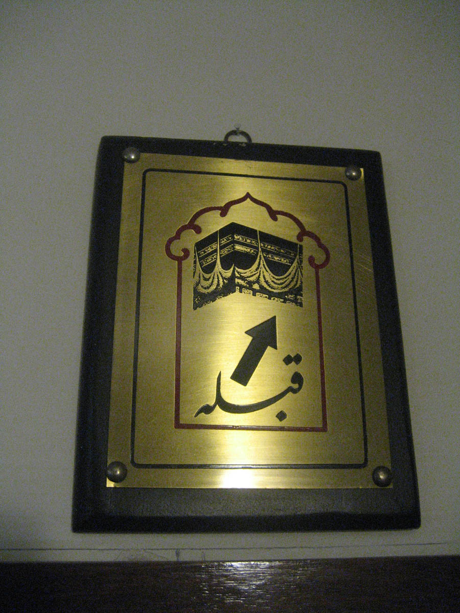 In case you happen to get disoriented in your hotel room, there is always plaque on the wall or the ceiling pointing the direction of Mecca for prayer time.