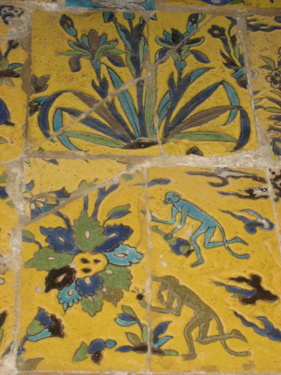 But this one little panel not only shows the image of a monkey, but he is carrying a jug of WINE! It predates the rule of Islam.