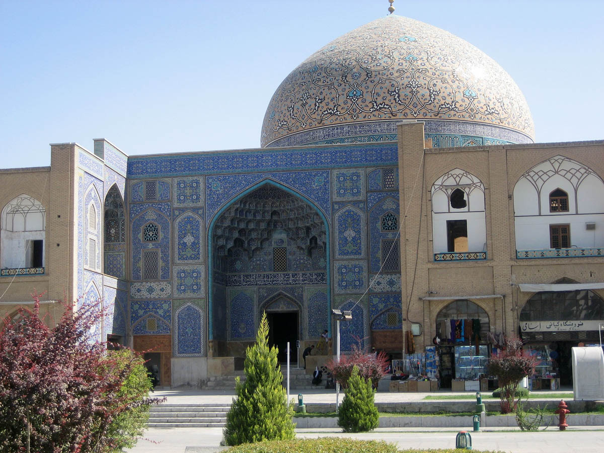 The cream-colored dome of the Sheikh Lotfollah Mosque inside Imam Square is unique in that it has no minarets, probably because it was never intended for public use, but rather a place for the women in the shah's harem to worship.