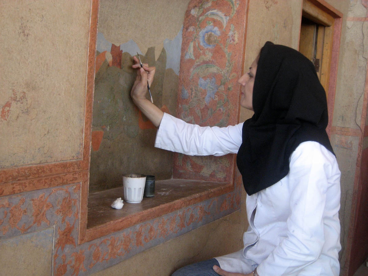 Restoration of the frescoes is underway in the Ali Qapu Palace