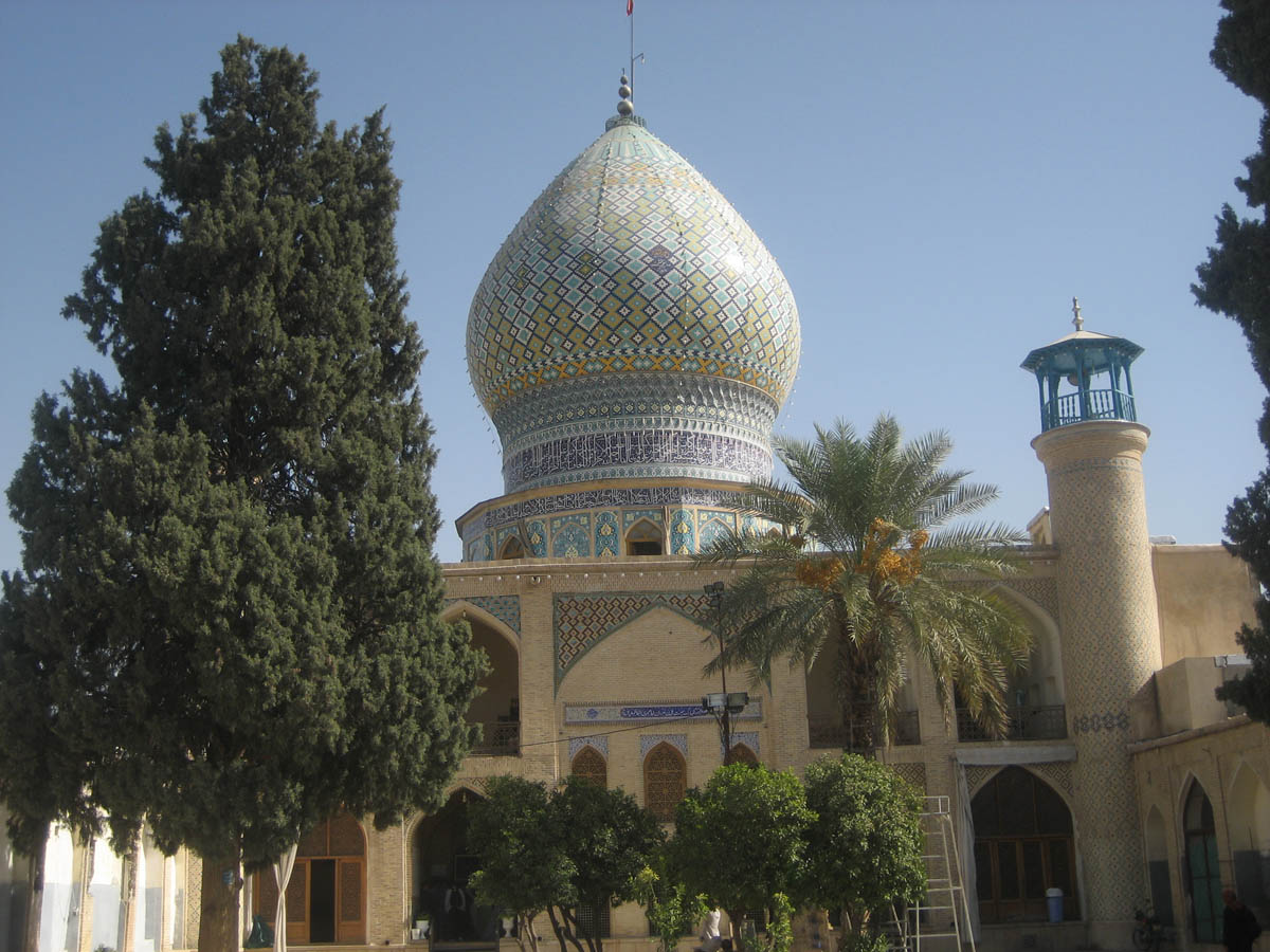 The external view of the dome and courtyard of the shrine of "Ali Ebn-e Hamze," Shiraz.