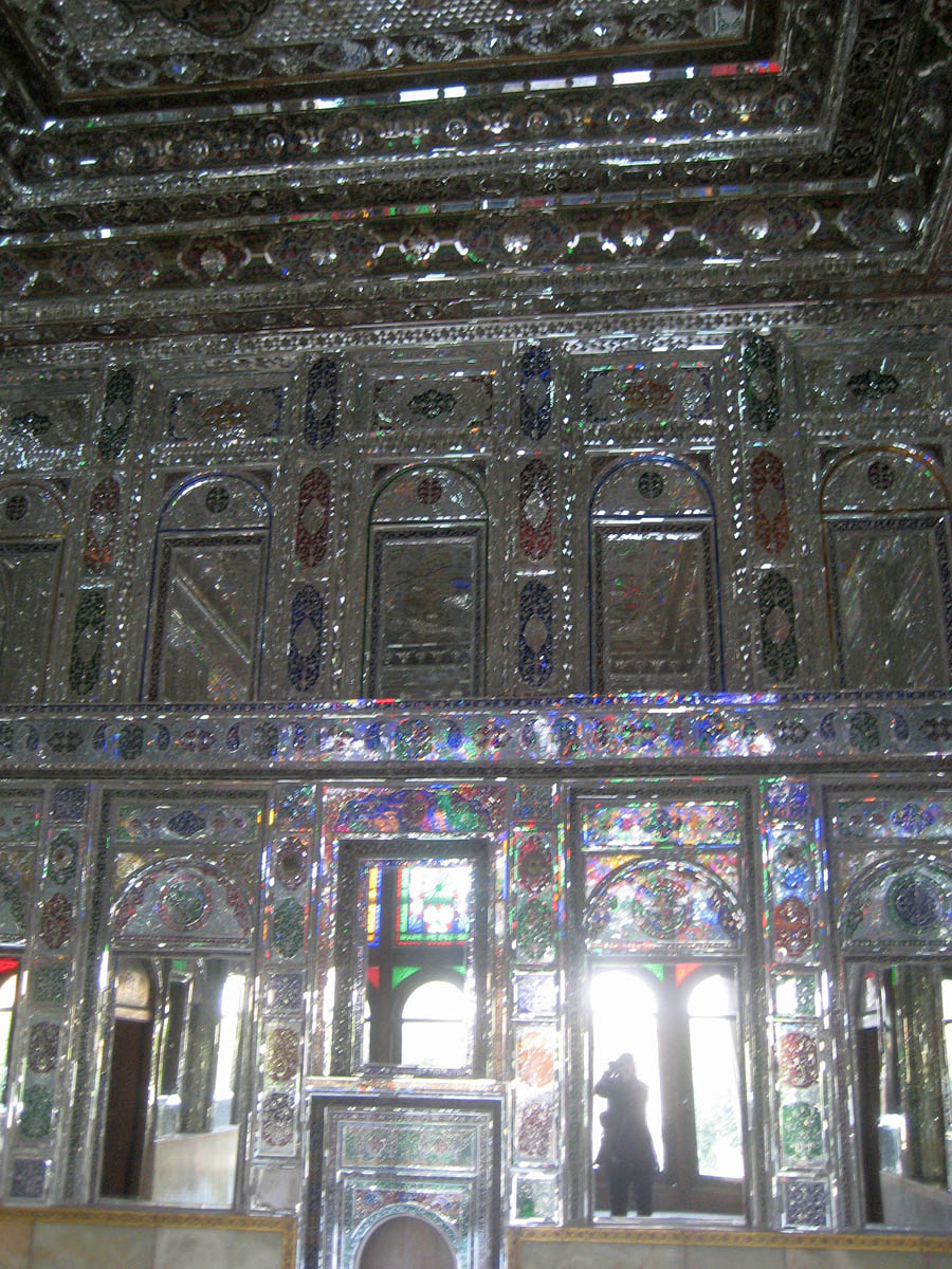 Mirrors are a huge part of Persian decor. Each palace or mansion always has a room that is solid mirrors -- "Naranjestan-e Ghavam," pavilion, built 1879.