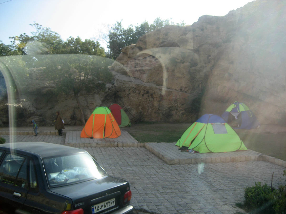 Pop-up tents are very popular in Iran, as are city parks containing concrete tent pads. Iranians camp out a lot in front of tourism sights in order to save on hotel costs.