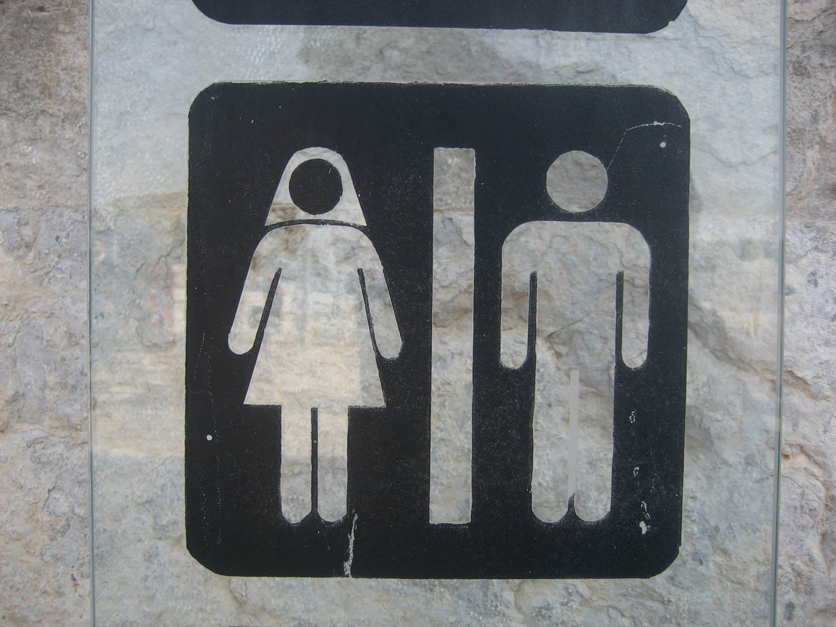 Notice anything odd about the woman in this restroom sign? (She is wearing the "hejab," or headscarf!)
